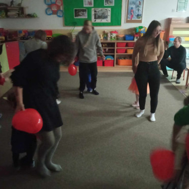 Zabawy dzieci z balonami w kształcie serca