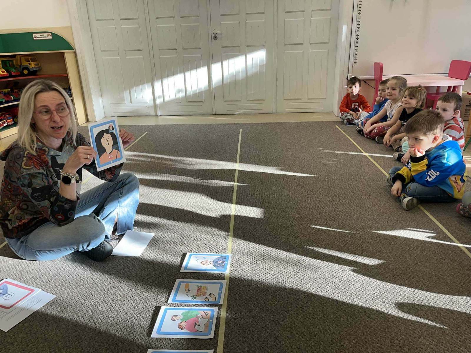 Dzieci zapoznały się z pojęciem Internetu oraz omówiliśmy do czego można wykorzystywać urządzenia ekranowe. Jakie są zagrożenia i korzyści związane z przeglądaniem stron, aplikacji, filmów i zdjęć.