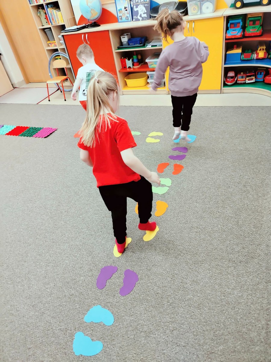 Celem dzisiejszych zajęć było usprawnienie integracji sensorycznej, czyli procesu, w którym mózg prawidłowo odbiera, interpretuje i reaguje na bodźce z otoczenia. Dzieci, które mają dobrze rozwiniętą integrację sensoryczną, lepiej radzą sobie z codziennymi wyzwaniami, takimi jak ubieranie się, pisanie czy skupienie uwagi.