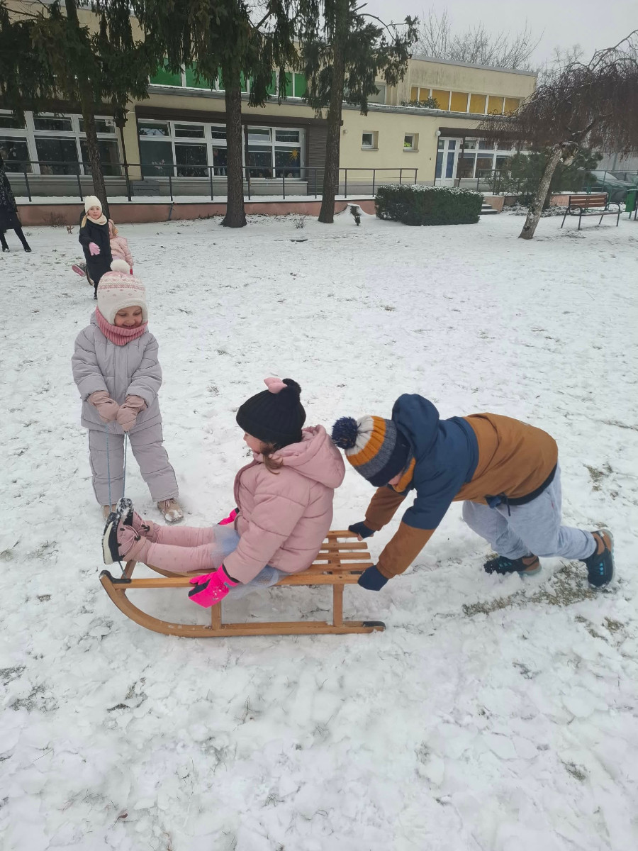 Dzieci bawią się na śniegu
