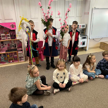 Starszaki pokazują dzieciom zwyczaje i tradycje wielkanocne