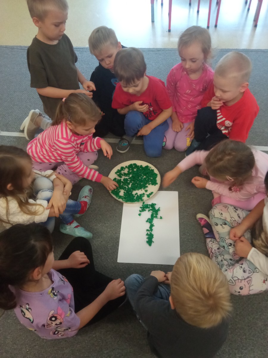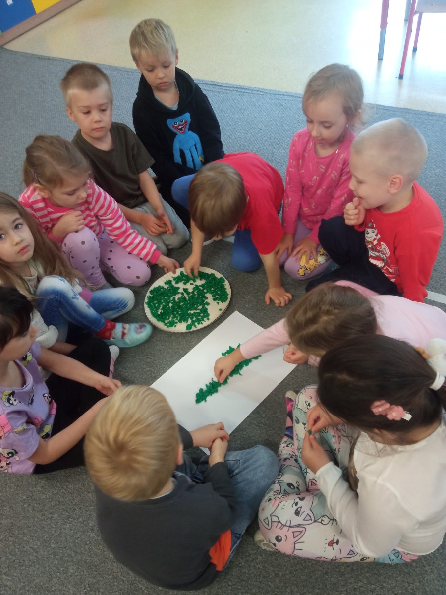 dzieci wyklejają cyfrę 1