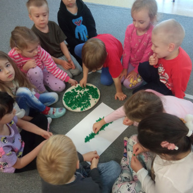 dzieci wyklejają cyfrę 2