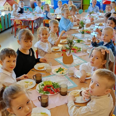 dzieci podczas śniadania wielkanocego