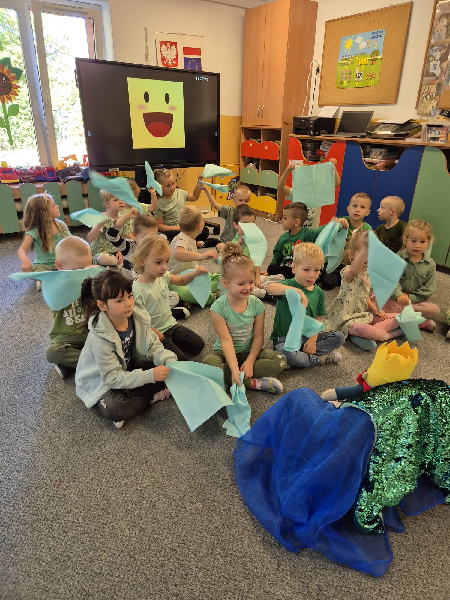 Król Maciuś I w Żabkach podczas zajęć o emocjach. Realizacja Ogólnopolskiego Dnia Przedszkolaka-kolor zielony