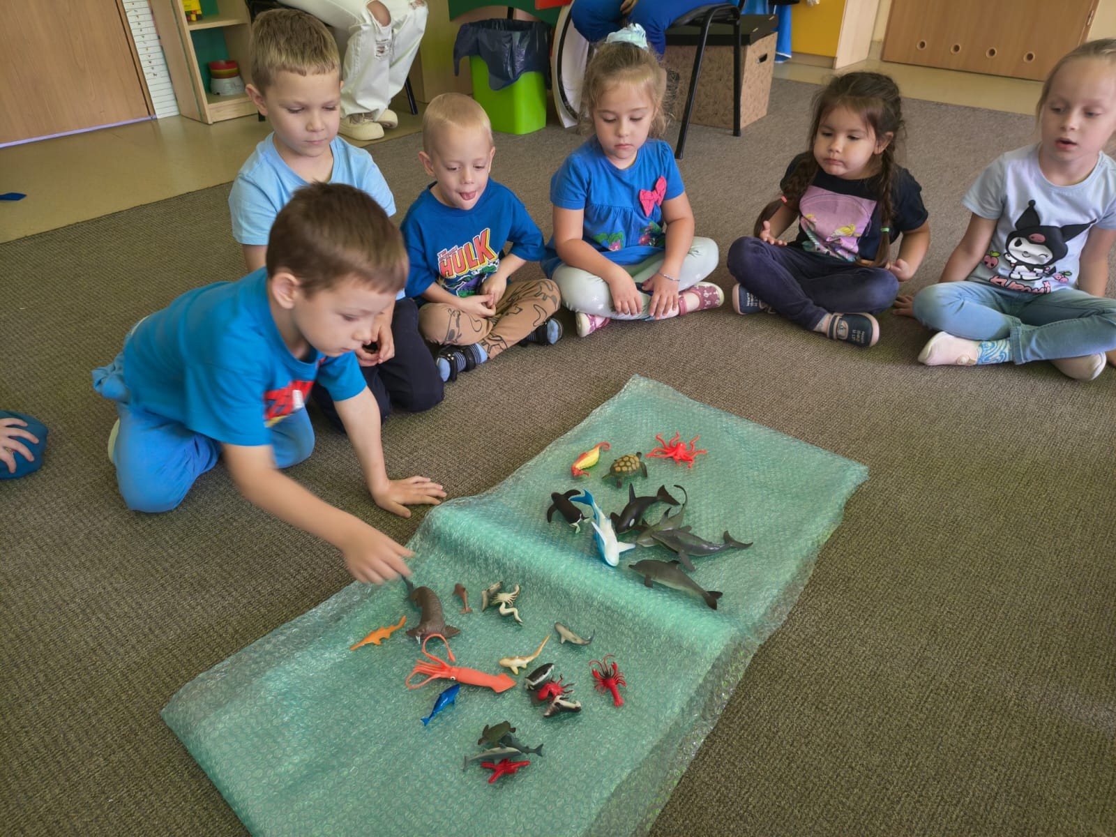 Drugi dzień poświęciliśmy emocjom. Dzieci, ubrane na zielono, rozmawiały o tym, jak je rozpoznawać, nazywać i jak radzić sobie w różnych sytuacjach.