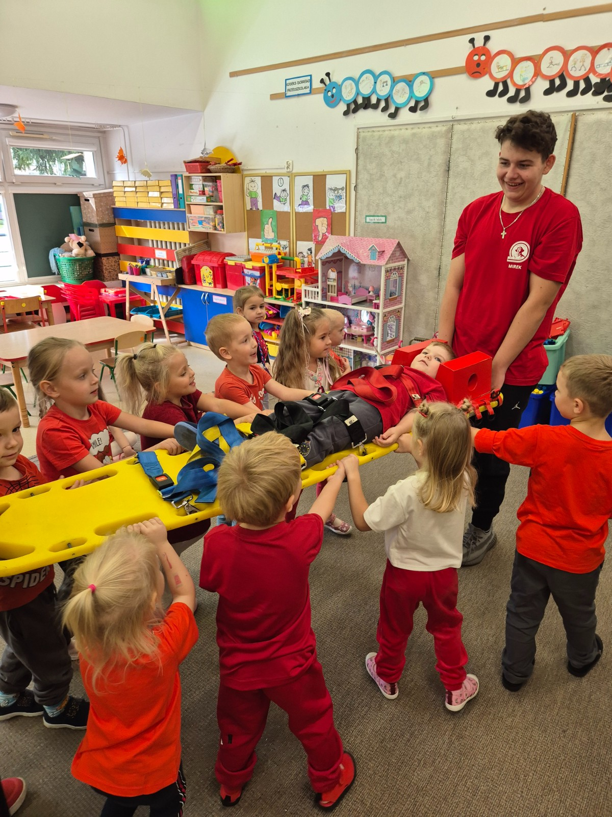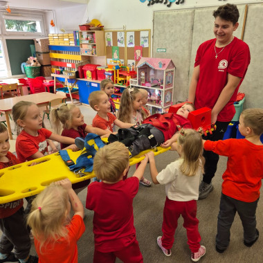 Tydzień rozpoczęliśmy od spotkania z uczniami klasy ratowniczo-medycznej z zespołu szkół im. Mikołaja Kopernika i ich opiekunami. Goście pokazali dzieciom, jak udzielać pierwszej pomocy.