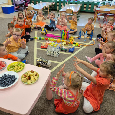 W tym dniu rozmawialiśmy o zdrowym odżywianiu. Przedszkolaki dowiedziały się, dlaczego warto jeść owoce i warzywa oraz co pomaga nam być silnym i zdrowym.
