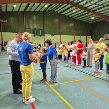 Tego dnia grupa „Pszczółki” wzięła również udział w obchodach Dnia Przedszkolaka na hali sportowej. Dzieci uczestniczyły w licznych konkurencjach i zabawach ruchowych, które promowały zdrowy styl życia.