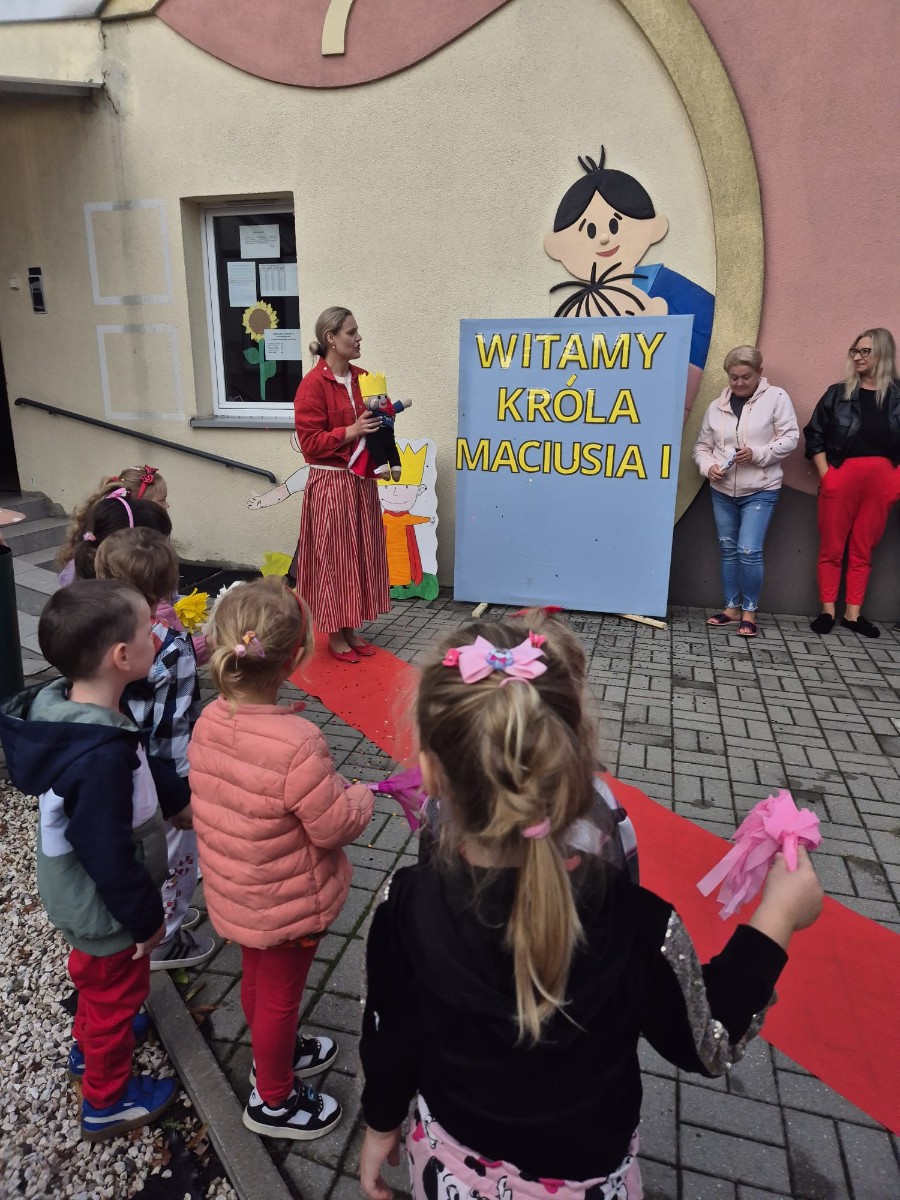 W naszym przedszkolu w dniach 15.09-19.09.2025r., gościł Król Maciuś Pierwszy, bohater ogólnopolskiej akcji OMEP. Jego wizyta stała się doskonałą okazją do rozmów o prawach dziecka. Przez cały tydzień wokół tego ważnego tematu odbywały się różnorodne zajęcia i zabawy. Dzieci poznały swoje podstawowe prawa, takie jak prawo do miłości, szacunku, zabawy, nauki czy wyrażania własnych uczuć i opinii.