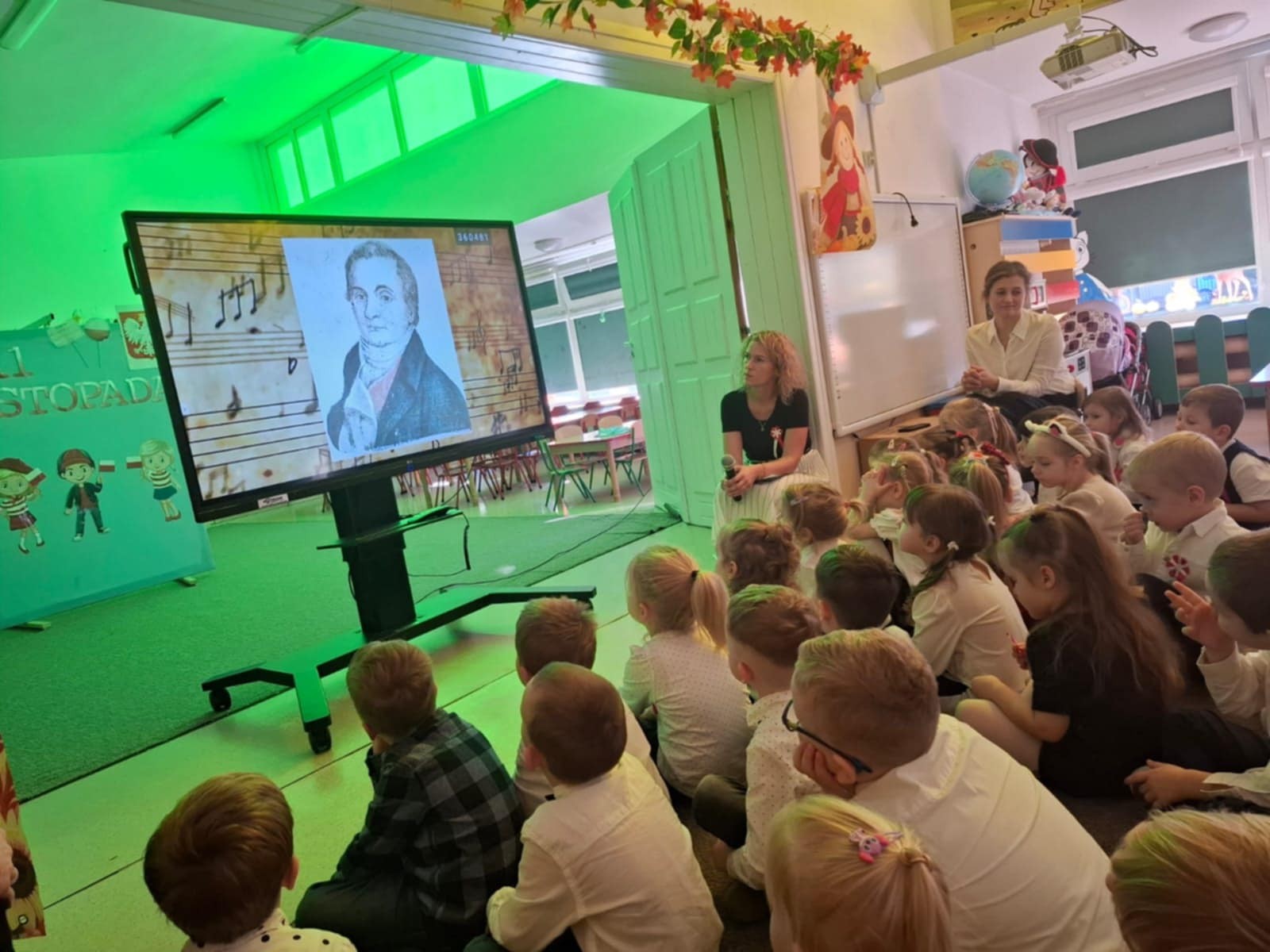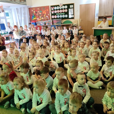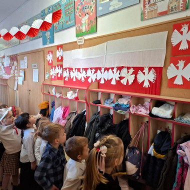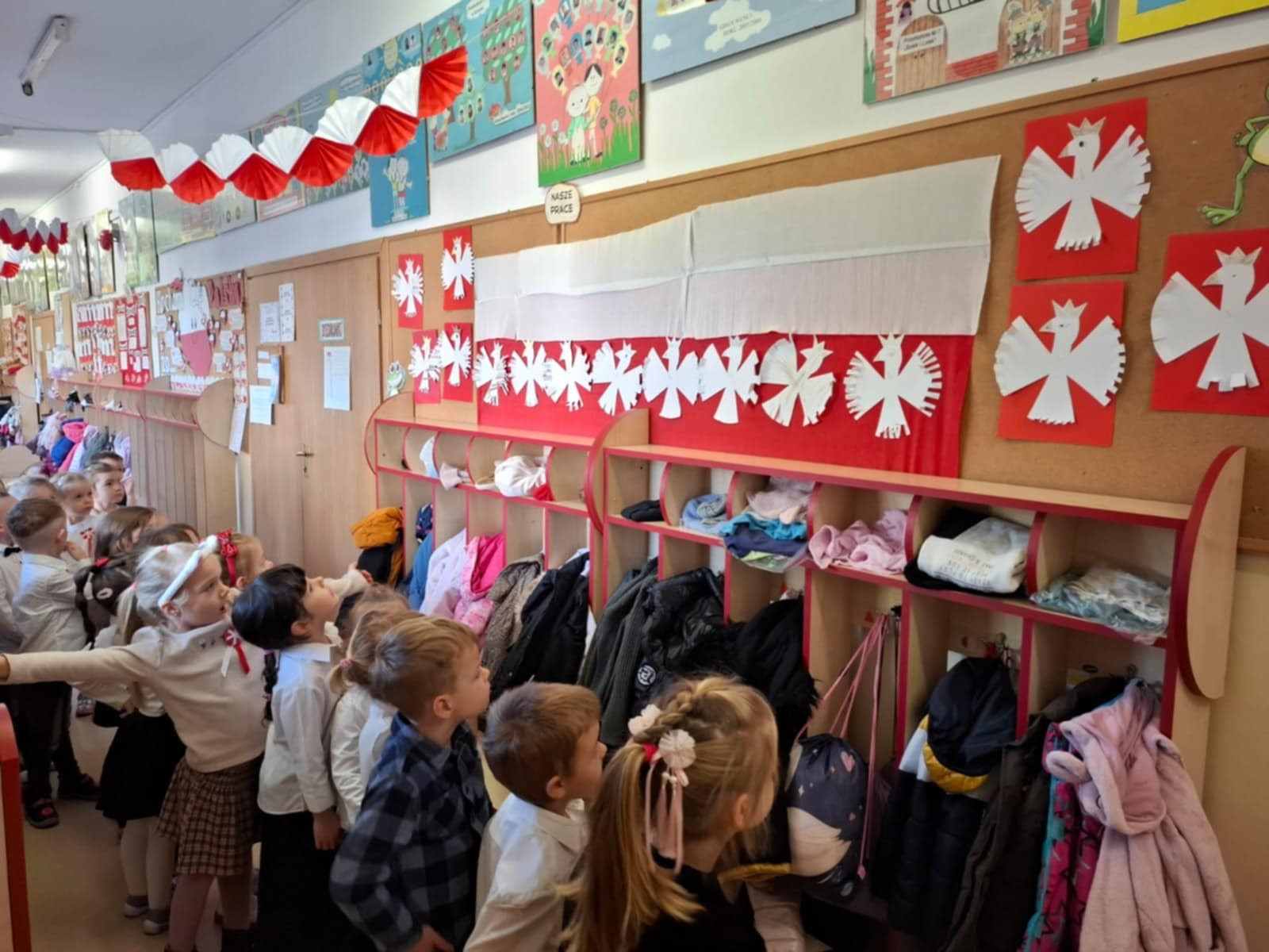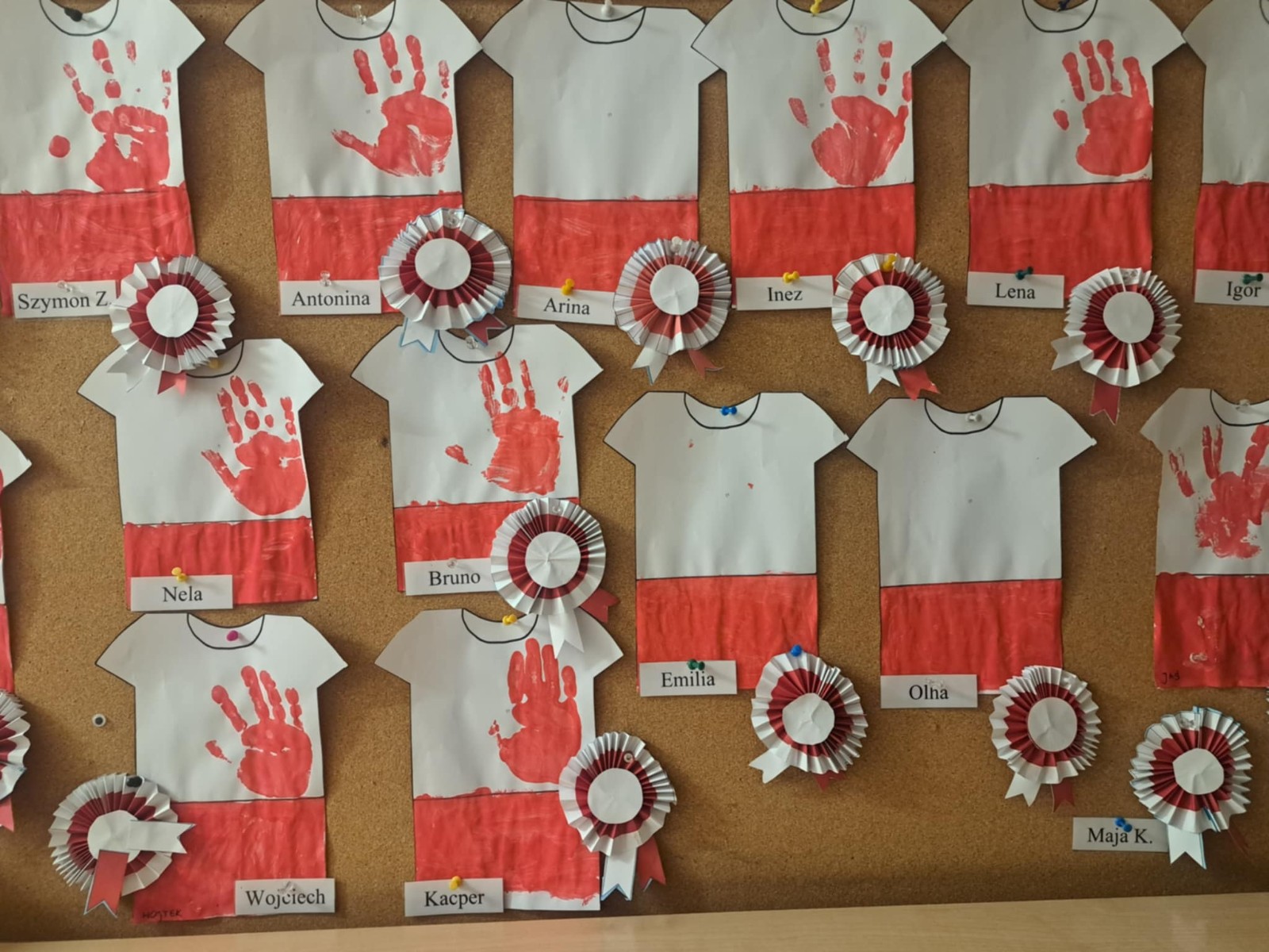 Dnia 07.11.2025r. ubrane na galowo dzieci uroczyście świętowały zbliżające się obchody Dnia Niepodległości poprzez wiersze i piosenki na temat naszego kraju i jego symboli narodowych. W tematykę święta wprowadził dzieci film edukacyjny „11 Listopada”, który przedszkolaki obejrzały z dużym zainteresowaniem. Wszyscy z powagą i w dużym skupieniu podziwiali program artystyczny przygotowany przez dzieci z grupy IV „Żabki”, a także Julkę z najmłodszej grupy przedszkolnej. O godzinie 11.11 przedszkolaki uroczyście odśpiewały Hymn Polski, a następnie obejrzały biało - czerwoną wystawę prac, wyeksponowaną na korytarzu przedszkola. Za udział w uroczystości dzieci otrzymały pamiątkowe dyplomy i patriotyczne kolorowanki.
