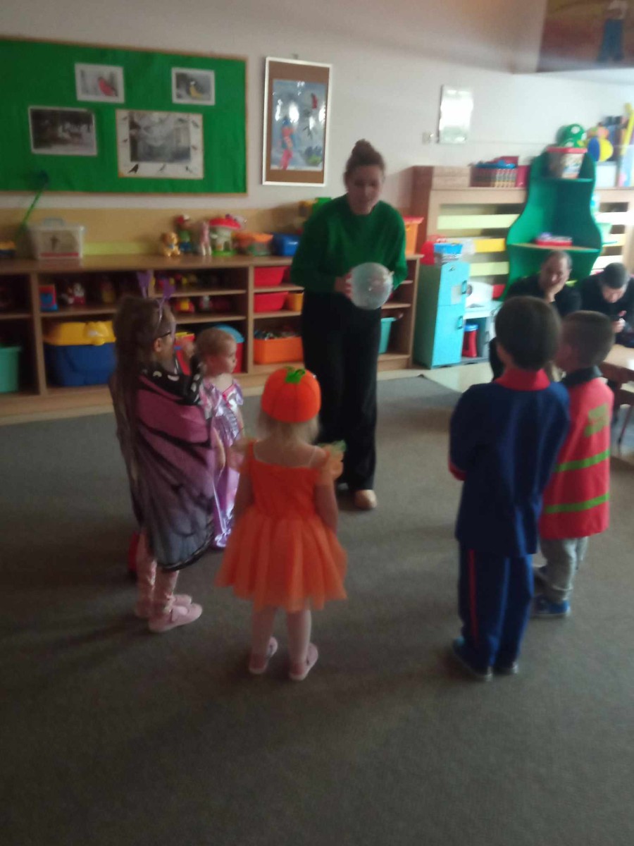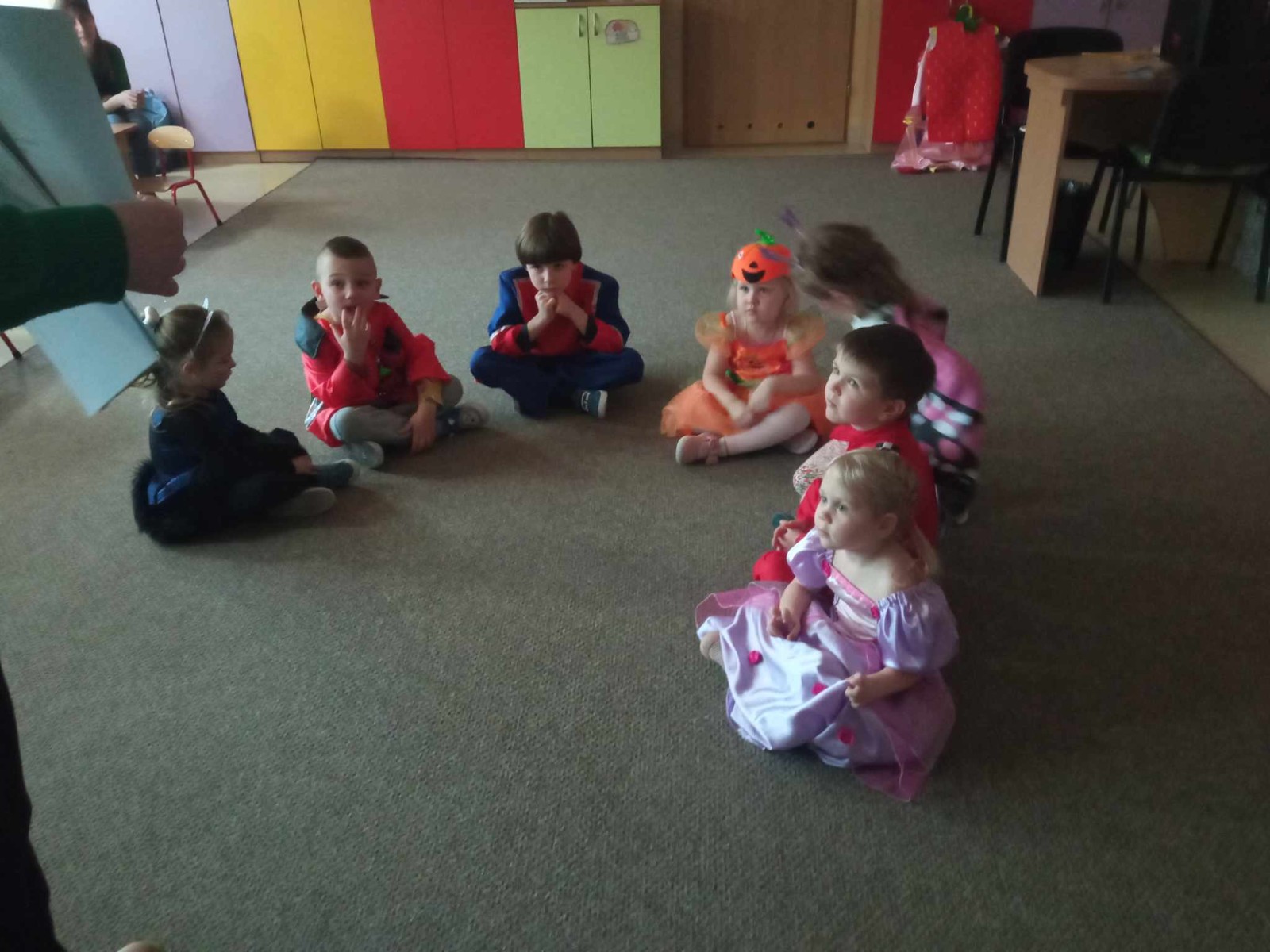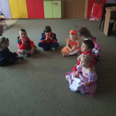 Dzieci siedzą w kole i rozmawiają o balu karnawałowym