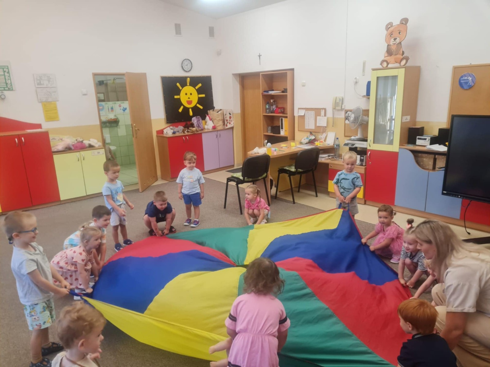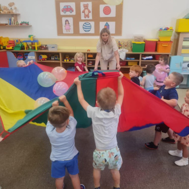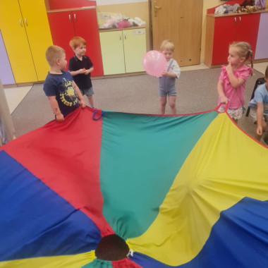 dzieci bawią się chustą animacyjną5