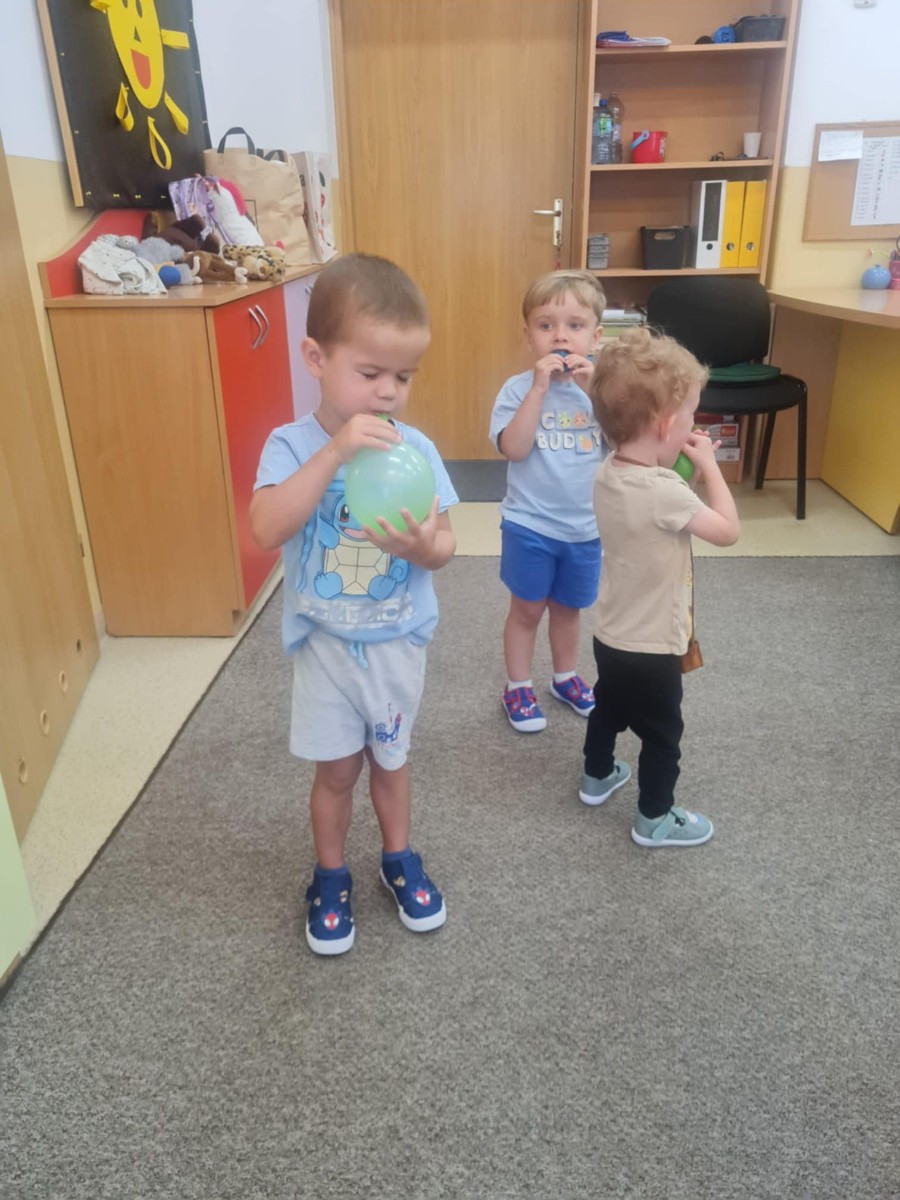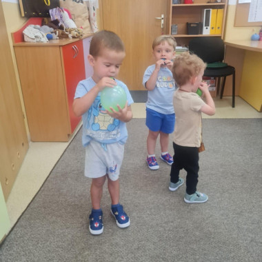 dzieci próbują nadmuchać baloniki