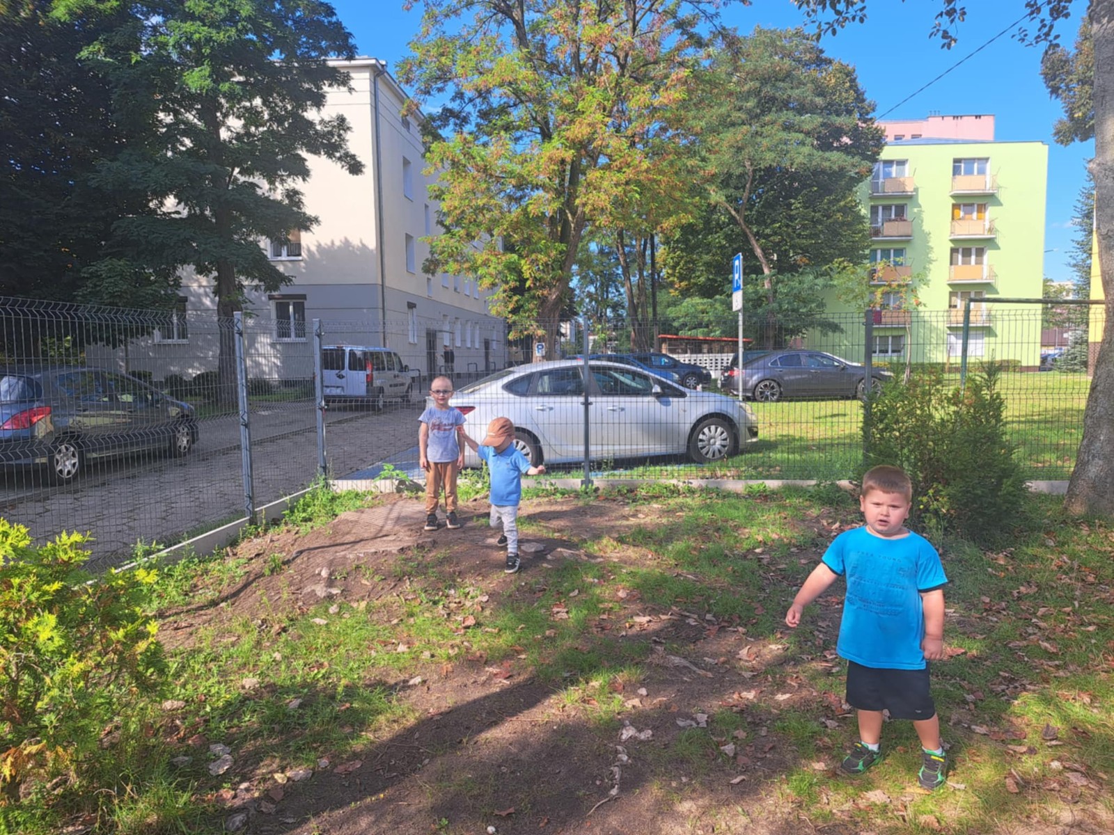 dzieci bawią się na trawie