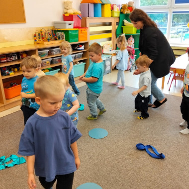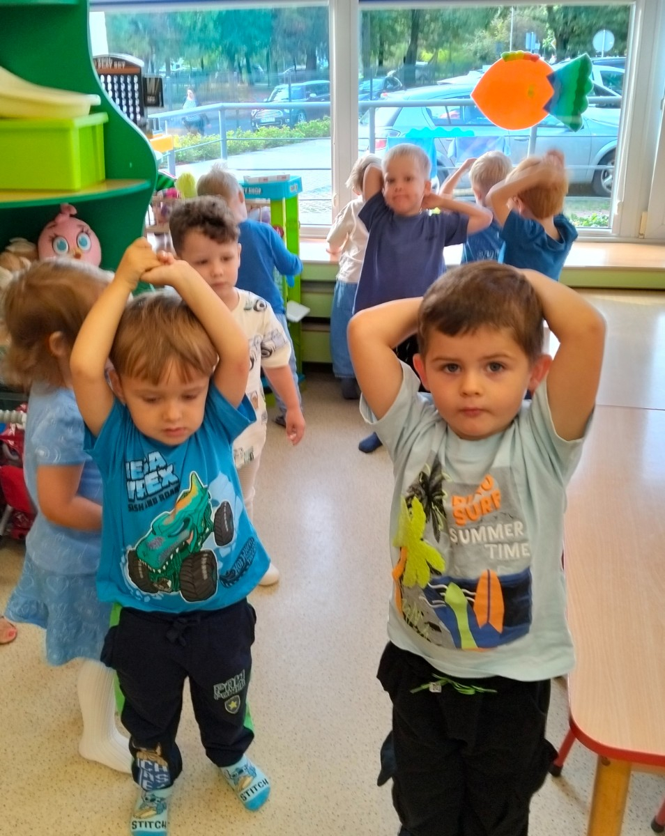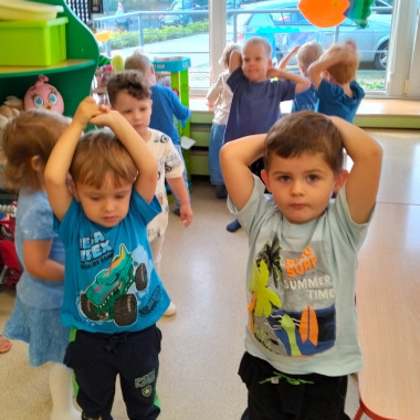Dzieci ćwiczą ręce - układaja z rąk kopułę parasolki 1