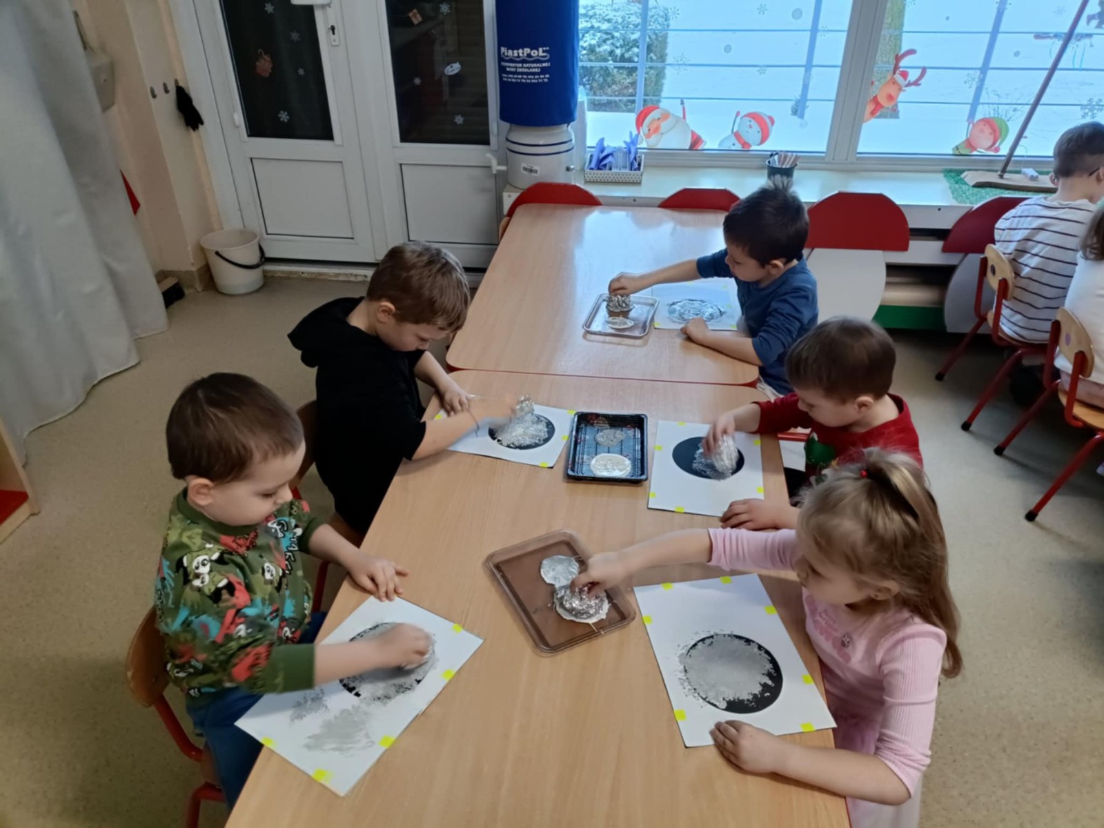 dzieci odciskują folię aluminiową