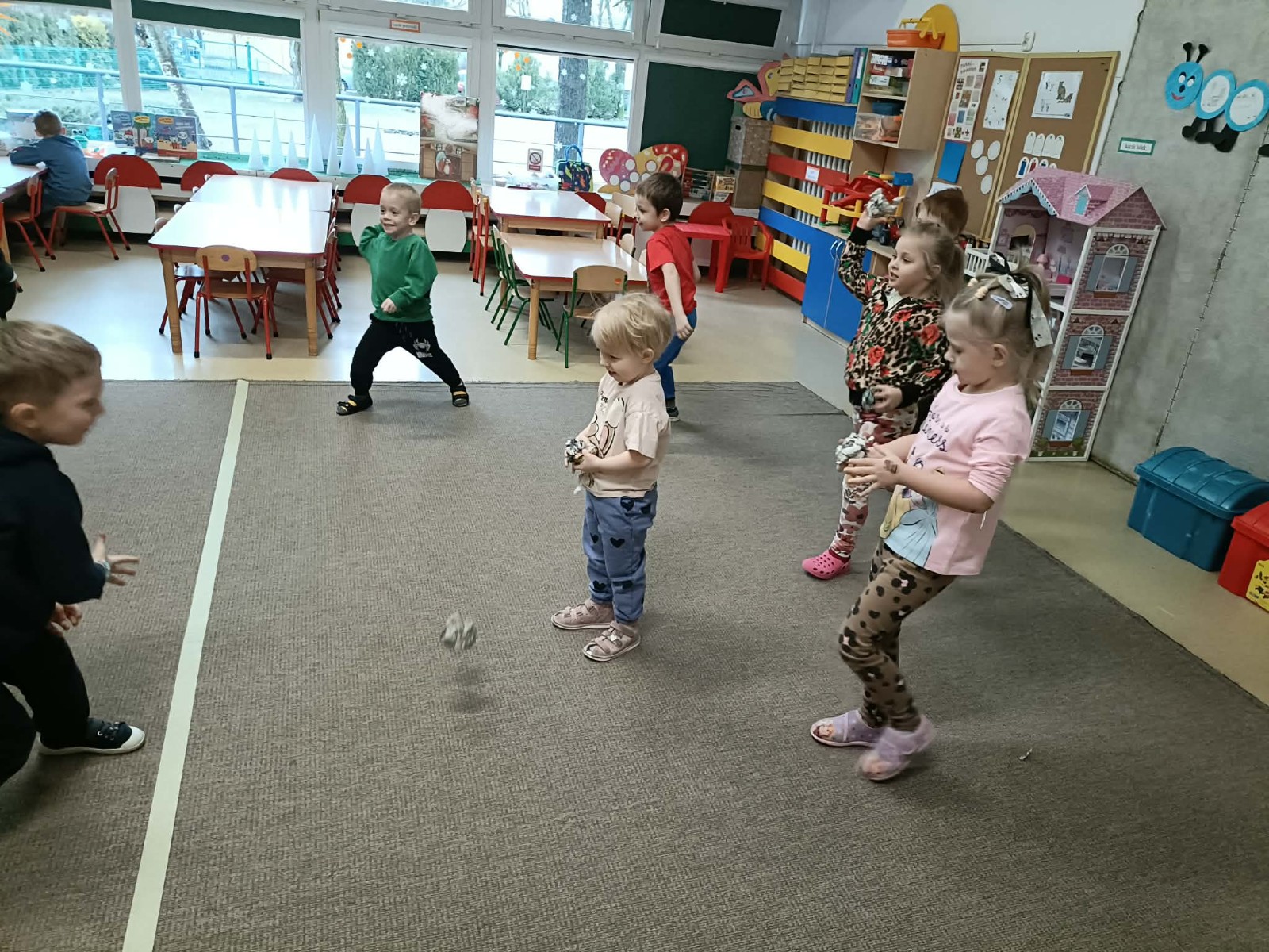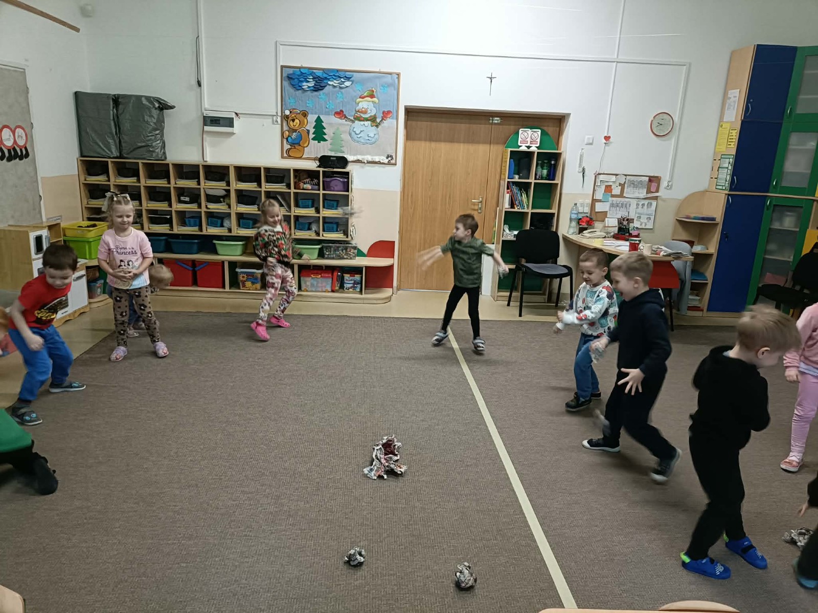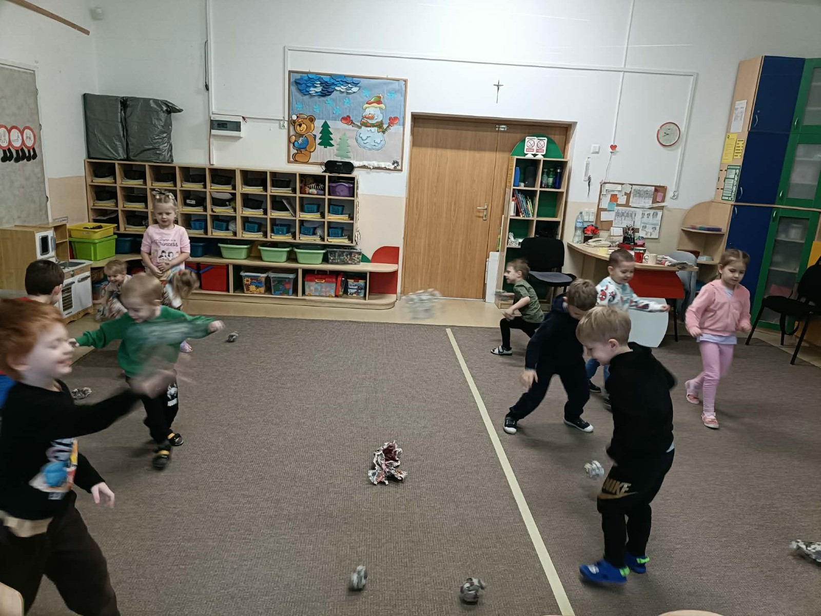 dzieci rzucają kulkami gazety