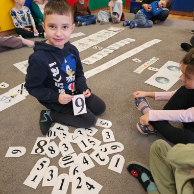 Dziewczynka układa zbiór 8 elementowy