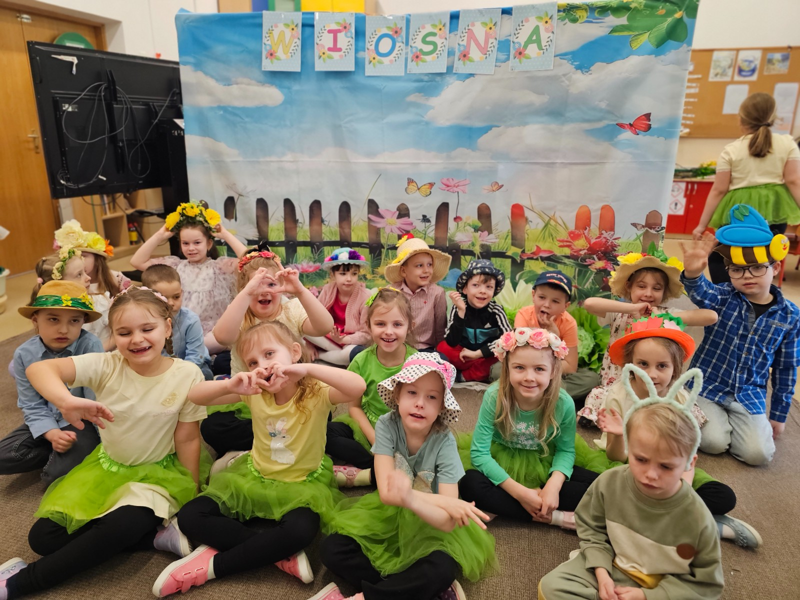 Zdjęcie grupy na tle napisu WIOSNA