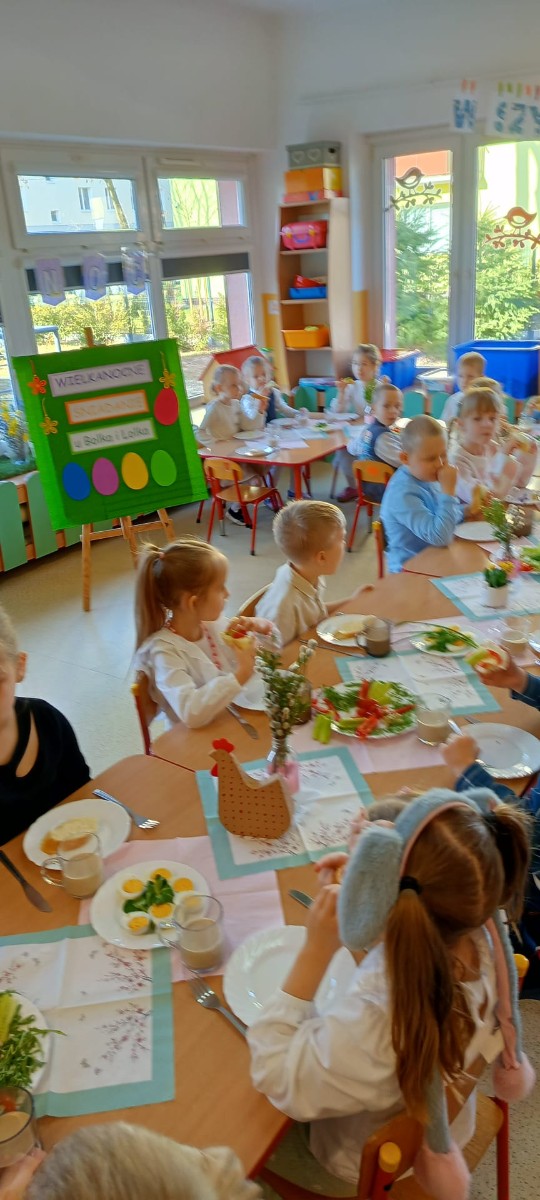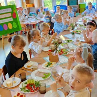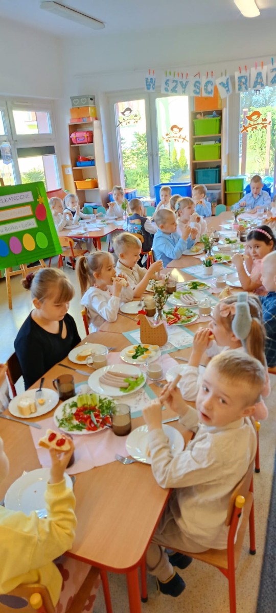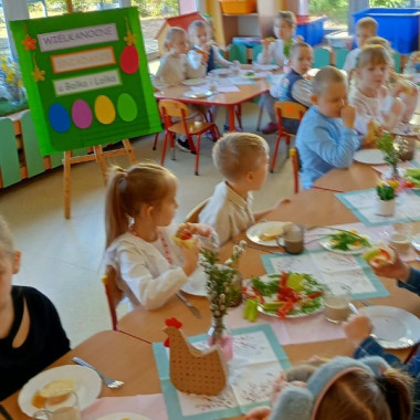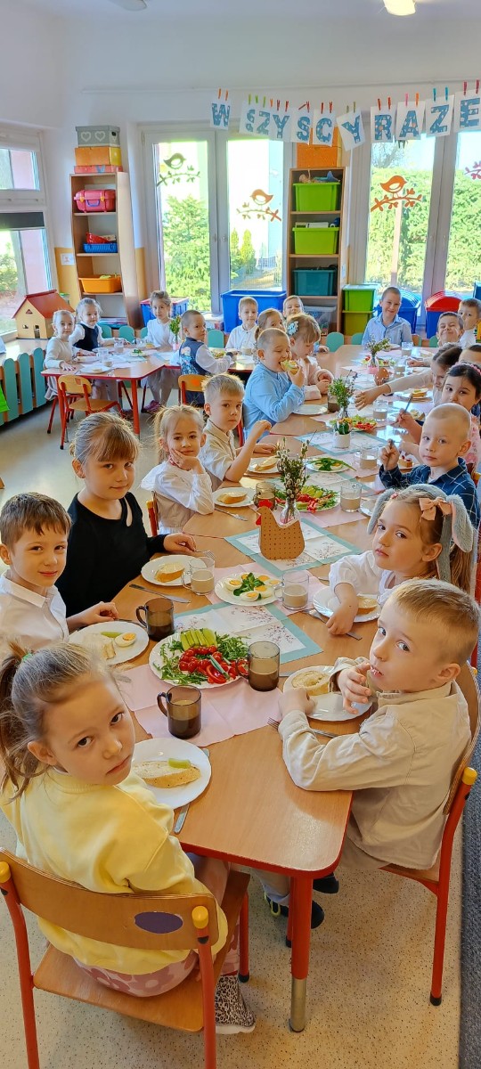 dzieci podczas śniadania wielkanocego