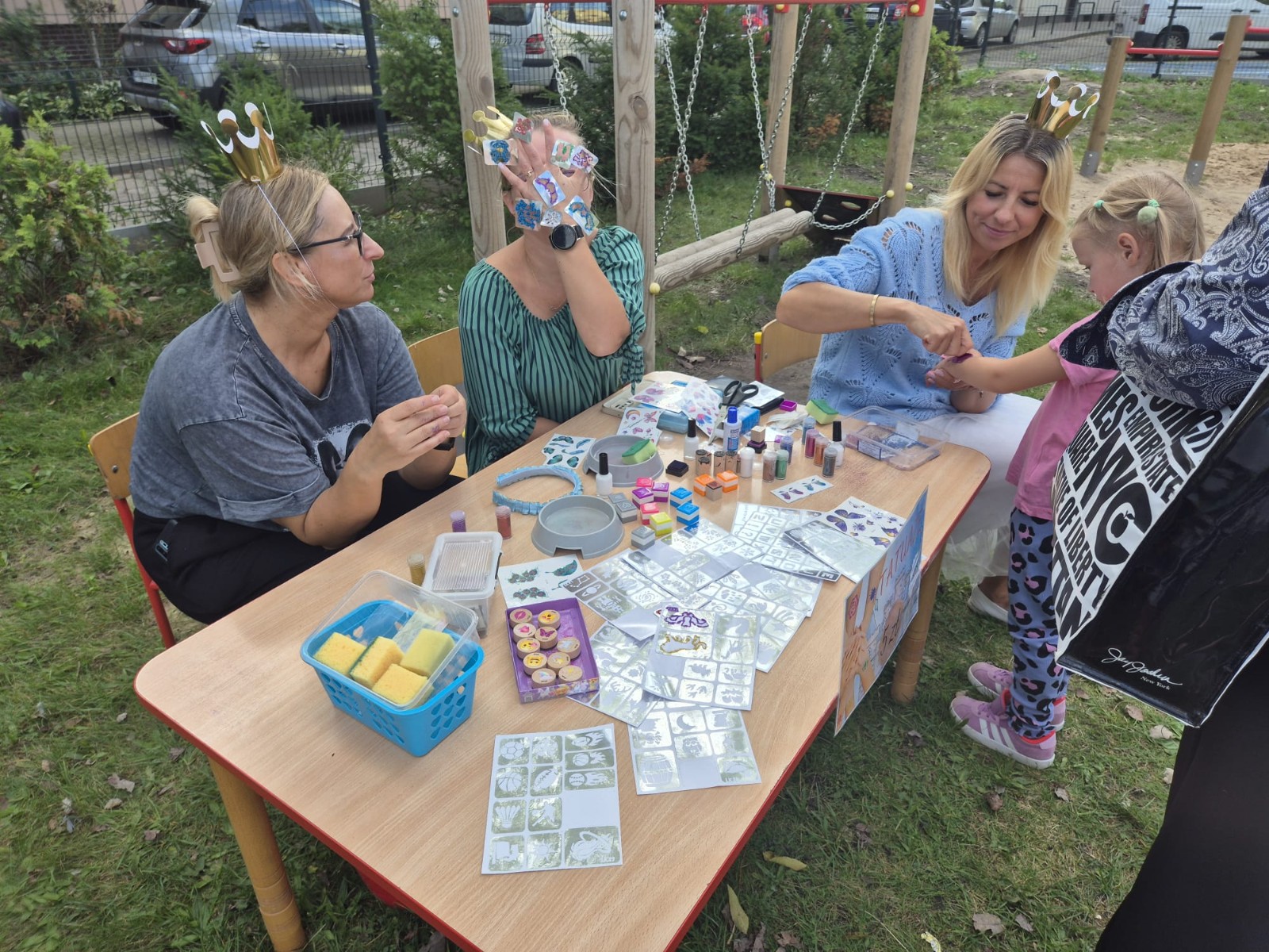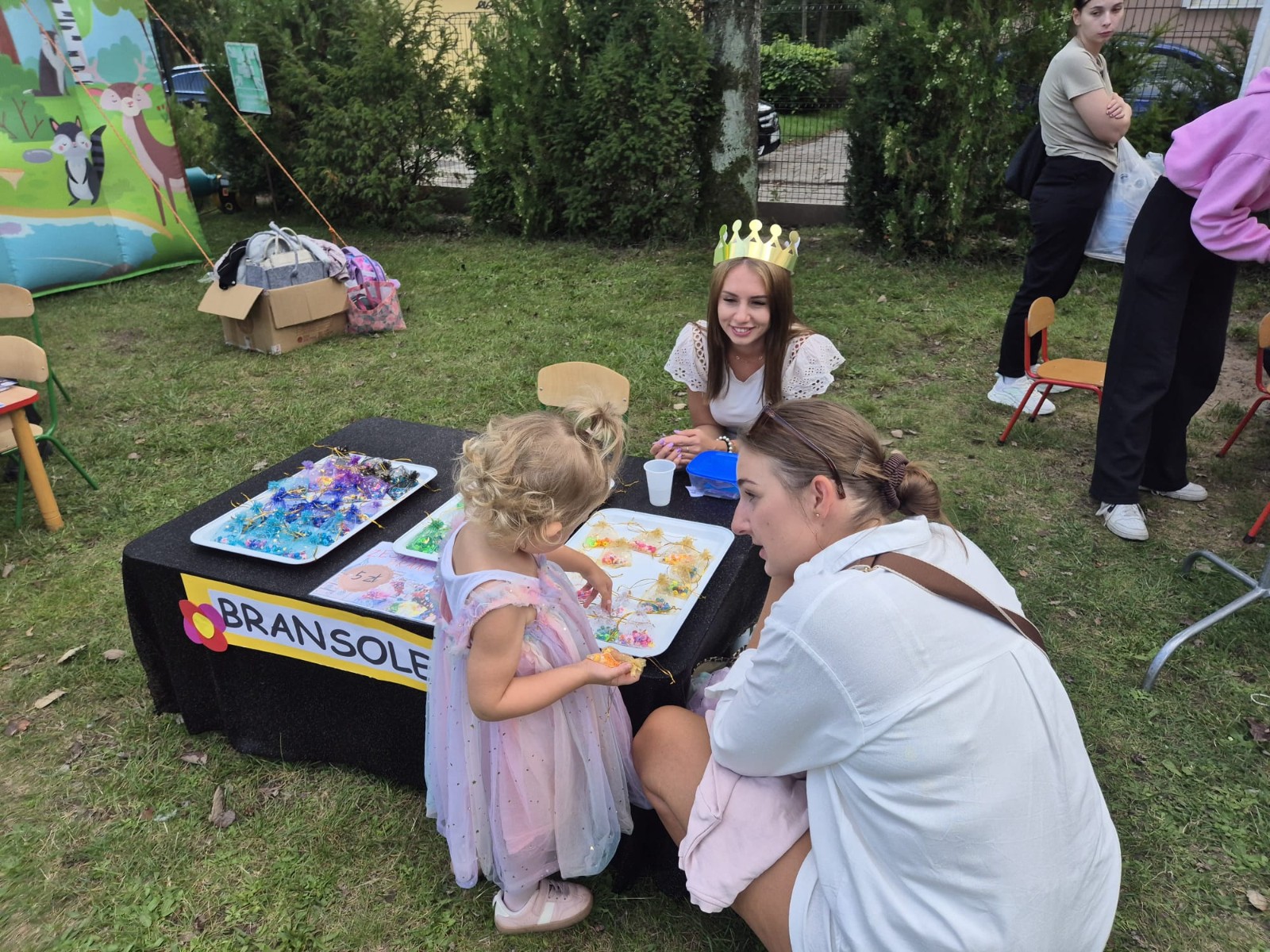 Przedszkolny ogród zamienił się w prawdziwe królewskie królestwo pełne barwnych dekoracji, balonów i girland. Na uczestników czekało mnóstwo atrakcji – ogromny dmuchaniec stał się miejscem skoków, ślizgów i radosnych podskoków, a na stanowiskach zorganizowano m.in: malowanie twarzy, brokatowe tatuaże, modelowanie balonów, a także konkurencje sportowe: przeciąganie liny.