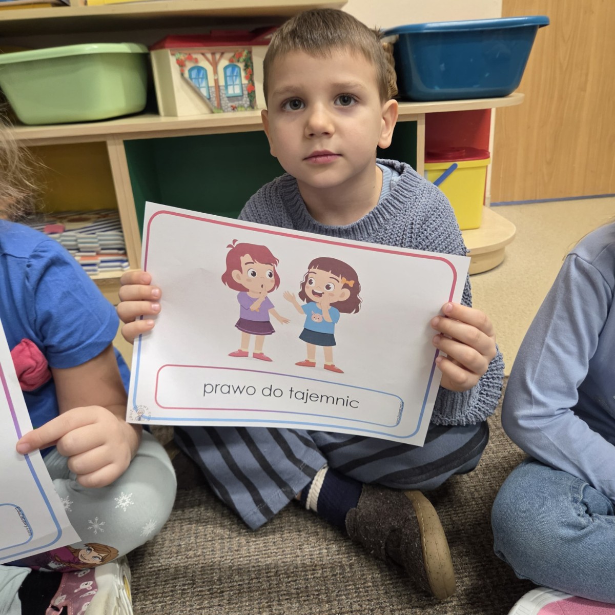 W trakcie zajęć dzieci aktywnie uczestniczyły w rozmowie. Potrafiły jasno wskazać i nazwać swoje prawa, m.in. prawo do miłości, bezpieczeństwa, opieki, zabawy czy nauki. Wymieniały również dobrze znane im obowiązki domowe, takie jak dbanie o porządek, pomoc rodzicom czy troska o własne rzeczy. Wykazały się dużą świadomością, dojrzałością i odpowiedzialnością.