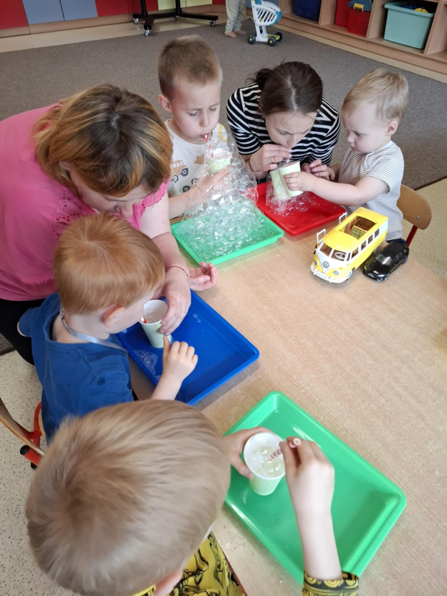 dzieci dmuchają przez słomkę